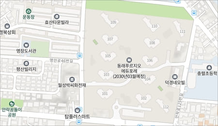 동래는 부산에서도 손꼽히는 학원가랑 학군이 있고, 에듀포레라는 이름 자체가 교육을 강조한다.